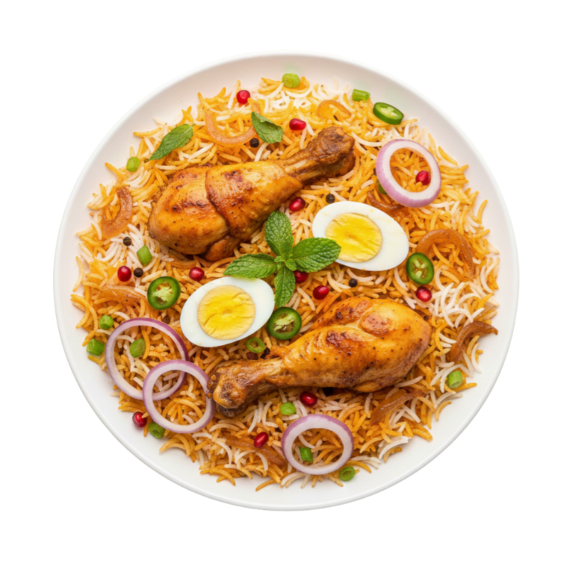 Savor rich, aromatic biryani crafted with tender chicken, bold spices, and an authentic taste that brings true comfort to every bite.
